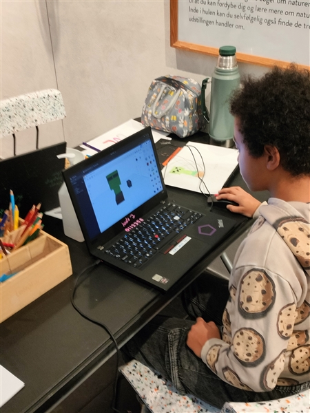 Her en lørdag midt i december 25 var vi på Hillerød Bibliotek, hvor Ung Hillerød havde arrangegeret n Maker-workshop, hvor man selv kunne lave 3D-figurer og programmere (8-14 år). Tænkte at K skulle lære det, vi har snakket om det. Der var kyndig vejledning af nogle unde mennesker. Han fik bare 10 minutters intro i TinkerCad, så tegnede han stort st selv en grøn creeper - i 3D. Forstår ikke de ikke lærer den teknologi i skolen. Projektet var financieret af EU under Erasmus og workshoppen var et led i formidlingen af dette. Super flot, og kan anbefales til alle børn.